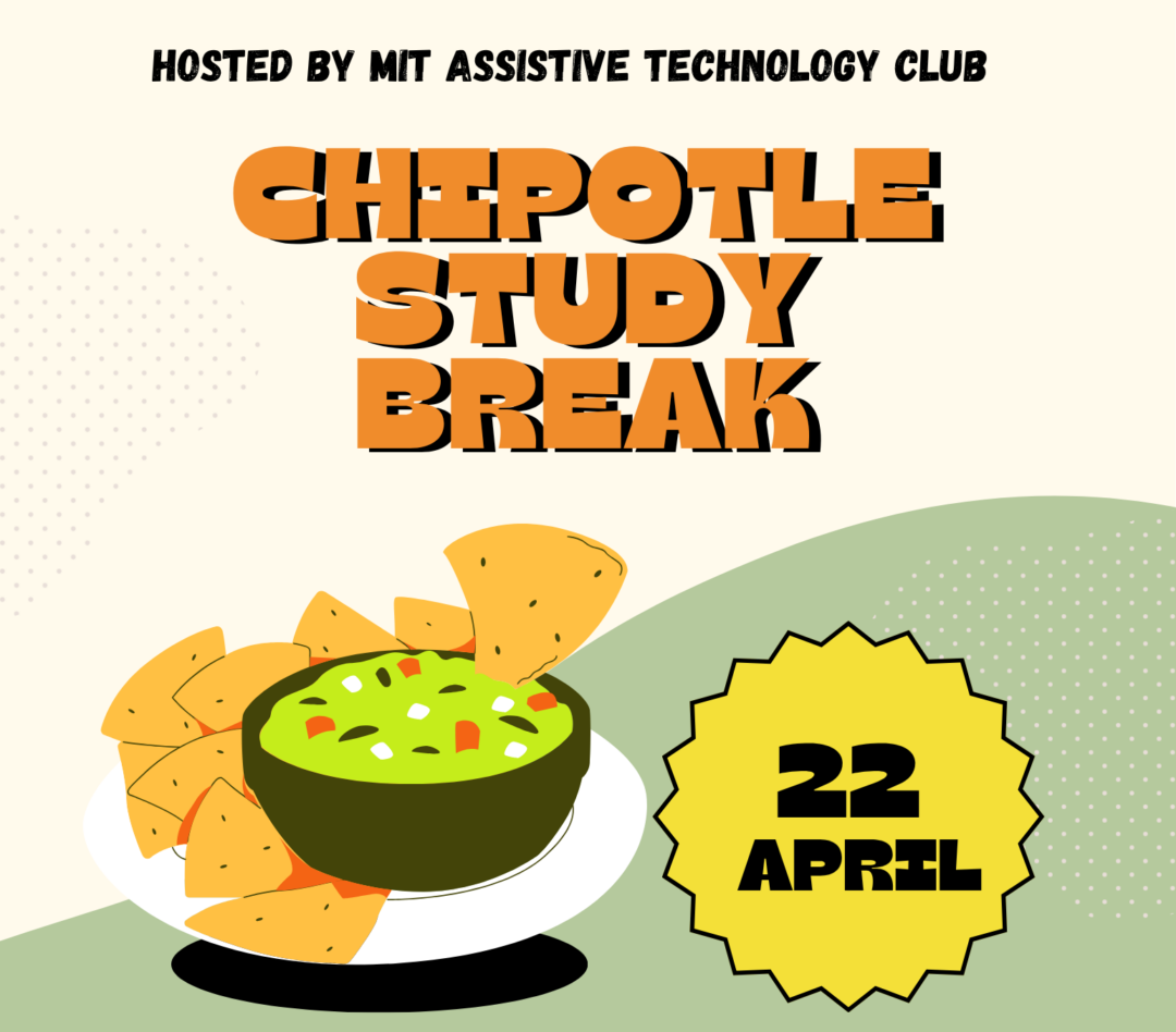 Stressed with midterms? Come grab free Chipotle and take a break. Hosted by the Assistive Technology Club, this is a low-key space to relax, recharge, or keep working. Stop by anytime from 5–7 PM at the Wellbeing Lab in Stud.